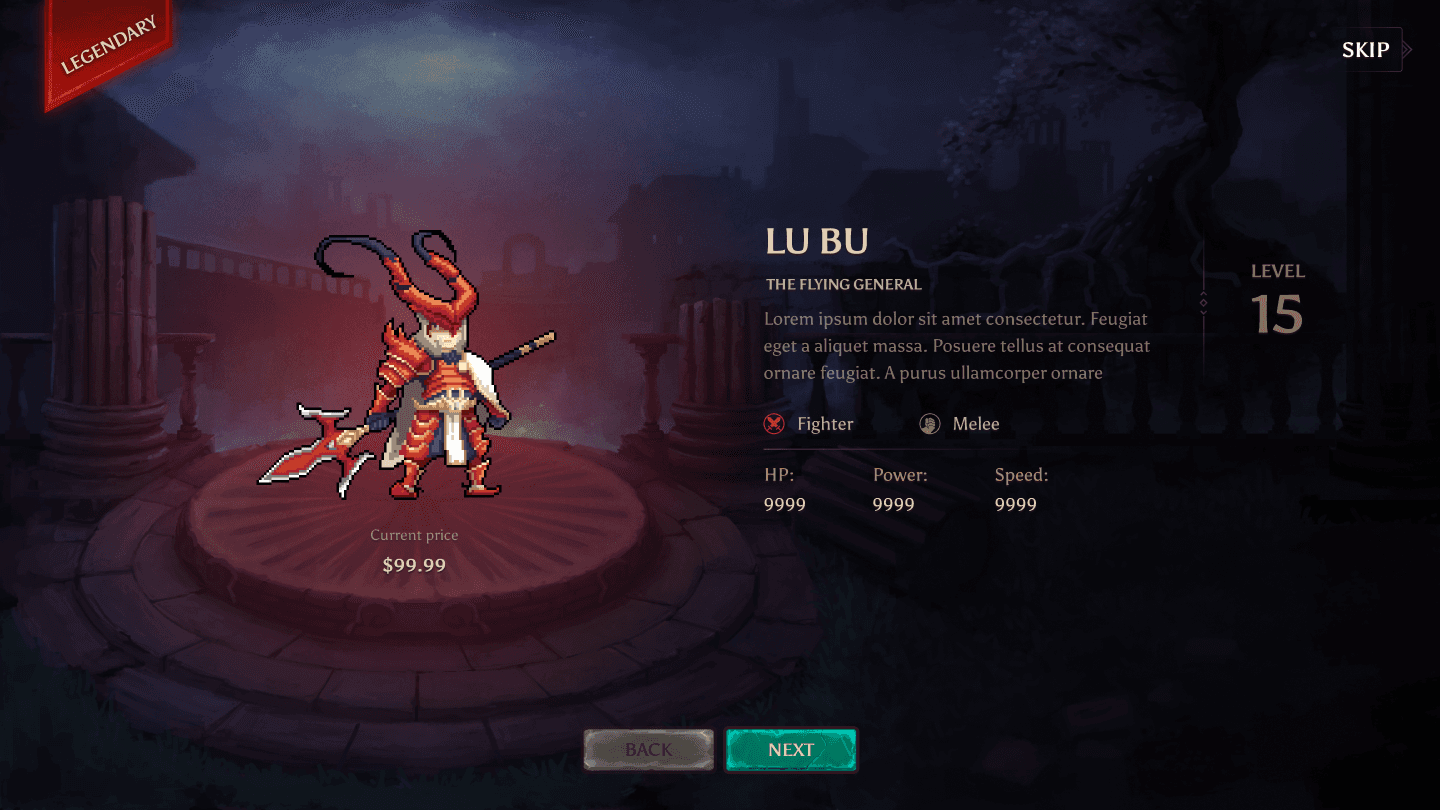 I collaborated with the art team to define UI dimensions and the graphic team to create icons. My responsibilities included assisting the lead UX/UI design for certain screens and designing transition motions to enhance the user experience. These were then handed off to technical artists and developers for implementation into the game.